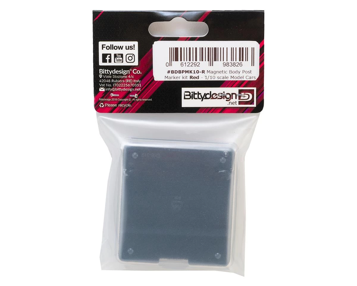 The Bittydesign Magnetic Body Post Marker Kit is a great tool to help get your body post holes lined up perfectly. Anyone who has mounted a body – especially a painted body – knows how difficult it is to get the post holes lined up perfectly. This high powered magnet kit helps you find the position of the body posts, dramatically simplifying the hole marking process. The kit is optimized to be used on all the 1/10 scale Off and On-Road cars and is a must have for enthusiasts that demand perfection.