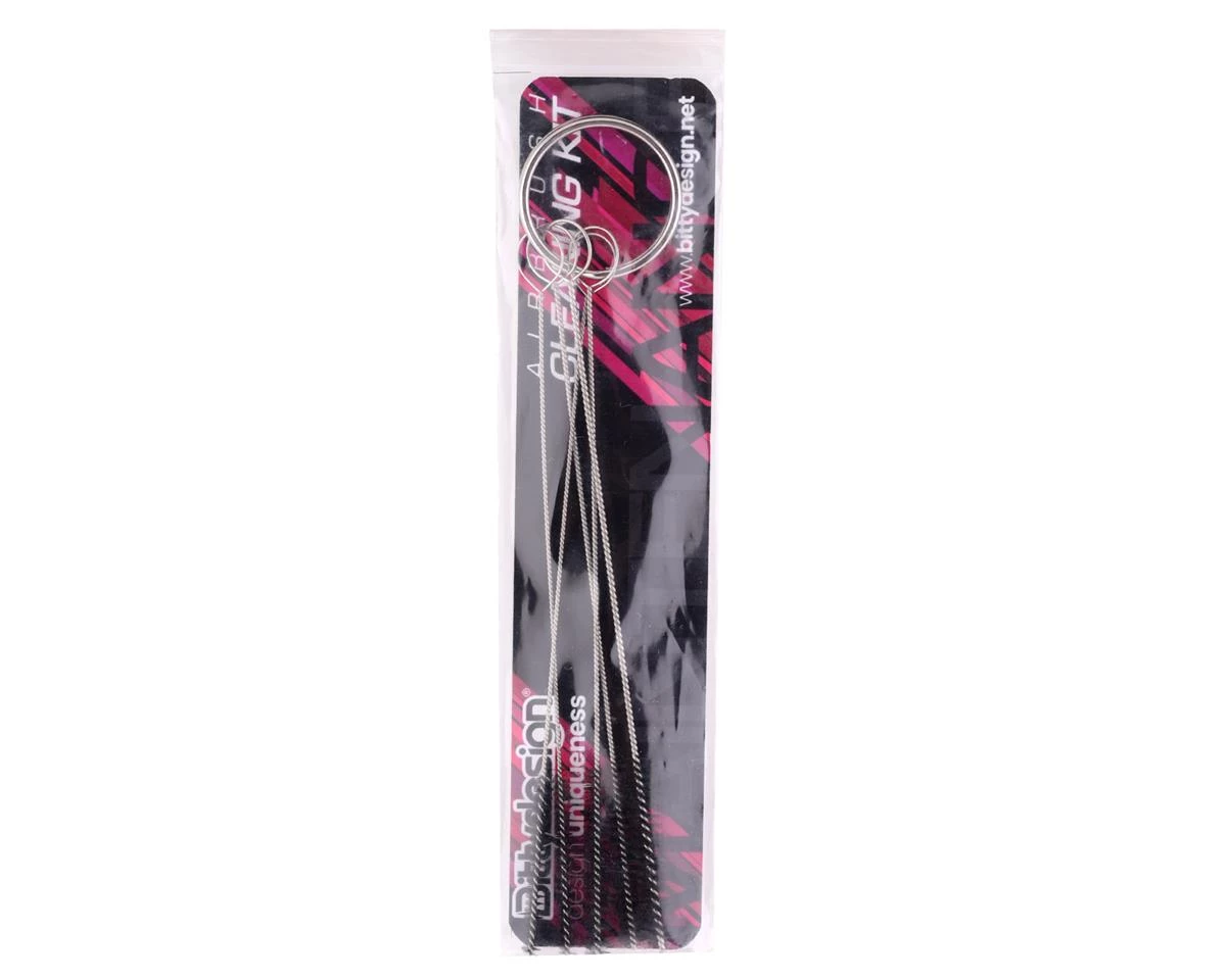 The Bittydesign Airbrush Cleaning Set includes five nylon developed specifically to clean an airbrush. The different brushes will ensure that you are able to thoroughly clean the inside of your equipment from dried paint and/or debris. Package includes one 5mm, two 4mm, one 3mm and one 2.8mm nylon brushes.