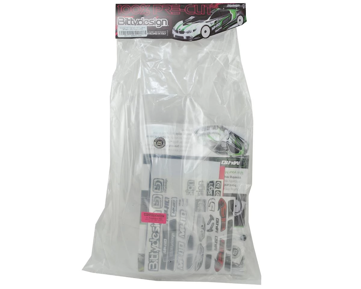 The Bitttydesign M410 Pre-Cut 1/10 Touring Car Body provides M410 fans with a precut body, ready to paint and install on your chassis! Not only are the body and wing 100% pre cut to save you time, but the CNC machined cut method ensures a level of perfection and precision that cannot be achieved by hand. Additionally the body post holes are pre-cut as well and position the shell 5mm forward, which is the ideal placement for most outdoor and indoor tracks.