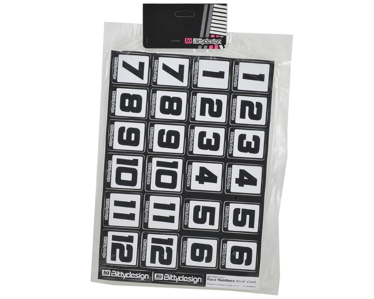BittyDesign’s Race Number Decal Sheets are big with the full sheet measuring 34x24cm, and including Race Numbers from 1 to 12. In fact, it includes two of each number! Made in Italy from high quality PVC, the serigraph print is protected with a thin, strong and lucid coating that is resistant to common cleaners and others aggressive degreasers. Each number is pre-cut and will not leave any glue residue when removing from your bodyshell.