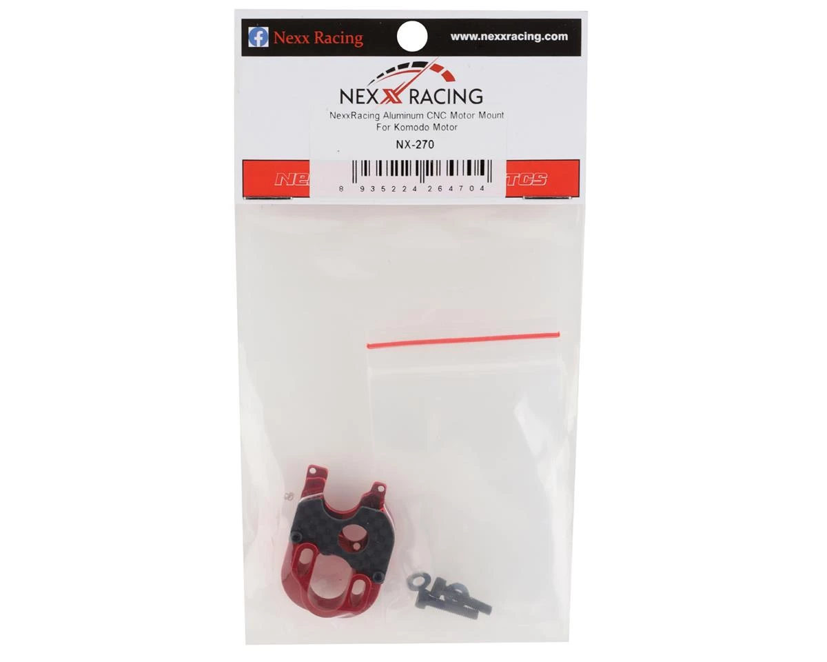 Nexx Racing CNC Aluminum Motor Mount. This optional motor mount set is designed to fit the Axial SCX24 and will allow you to mount the Furitek Komodo series motor. Made from carbon fiber and aluminum for a super strong and clean finish. Package includes one motor mount with hardware.