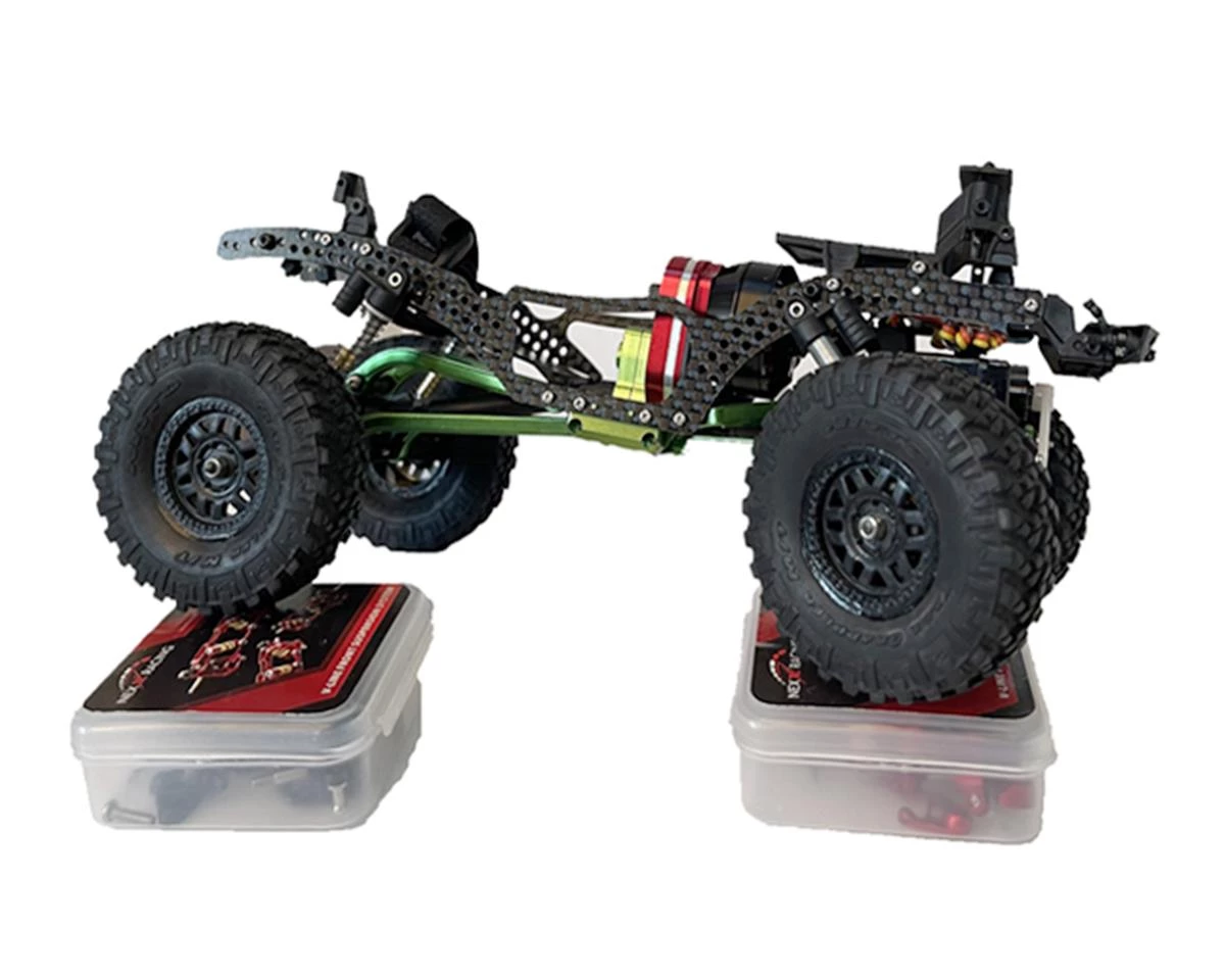 The NEXX Racing Axial SCX24 Carbon Fiber Artemis Chassis Kit is a great way to improve the overall performance of the SCX24 platform. This optional upgrade is extremely light weight, and offers a variety of shock and link mount options, allowing users to tune the chassis for multiple wheelbase and shock length options.