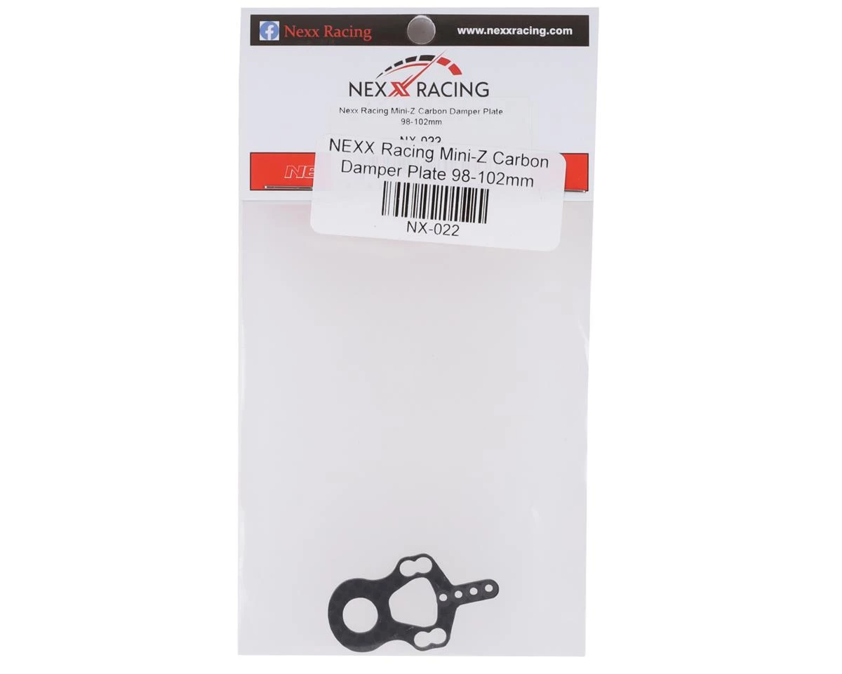 A replacement Nexx Racing Carbon Damper Plate (98-102mm version) suited for use with the Mini-Z family of vehicles when equipped with the Carbon Disk Damper Set from Nexx Racing.