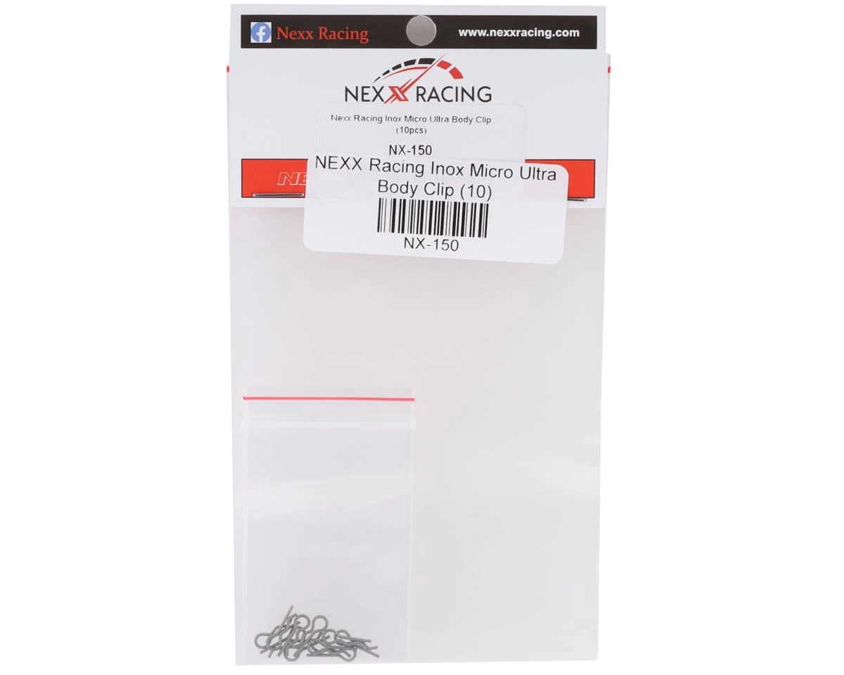 This is a replacement set of ten NEXX Racing Micro Ultra Body Clips. Suited for use with the Mini-Z family of vehicles.