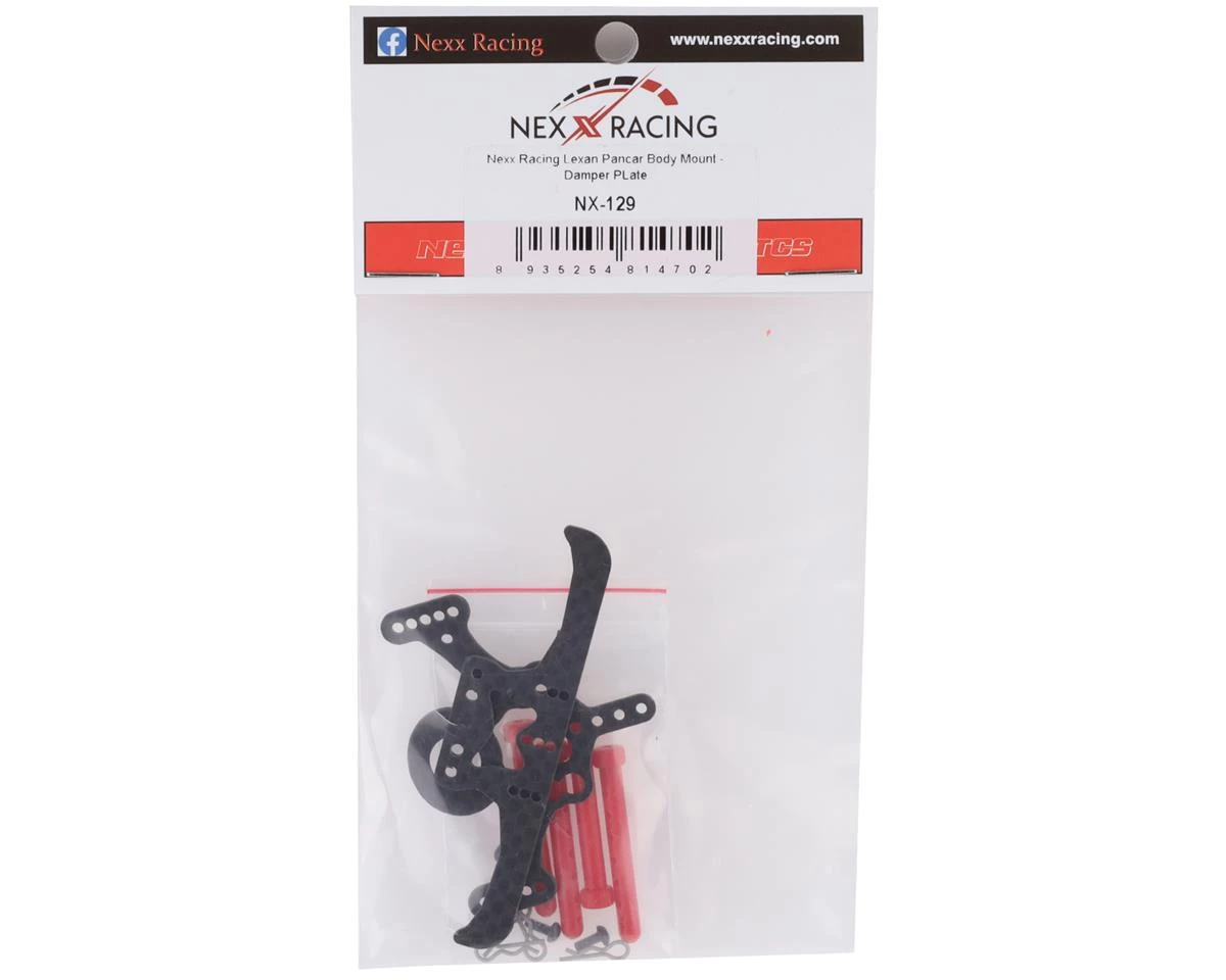 This is a replacement NEXX Racing Pancar Body and Damper Plate Kit, suited for use with the Mini-Z family of vehicles. Includes four body posts, mounting hardware, and body clips.