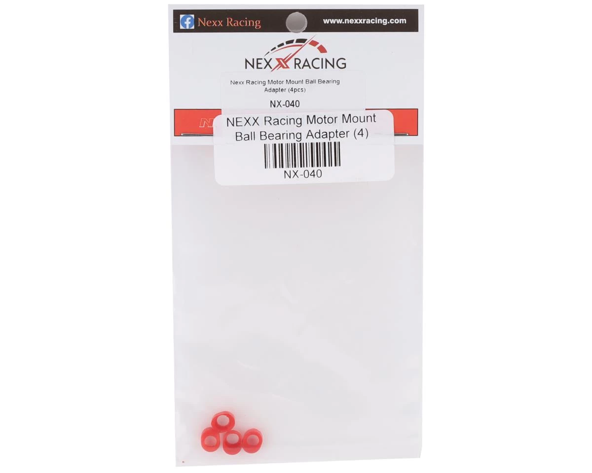 A replacement set of four NEXX Racing Motor Mount Ball Bearing Adapters. These are originally found in all NEXX Racing Motor Mount Kits for the Mini-Z vehicles.
