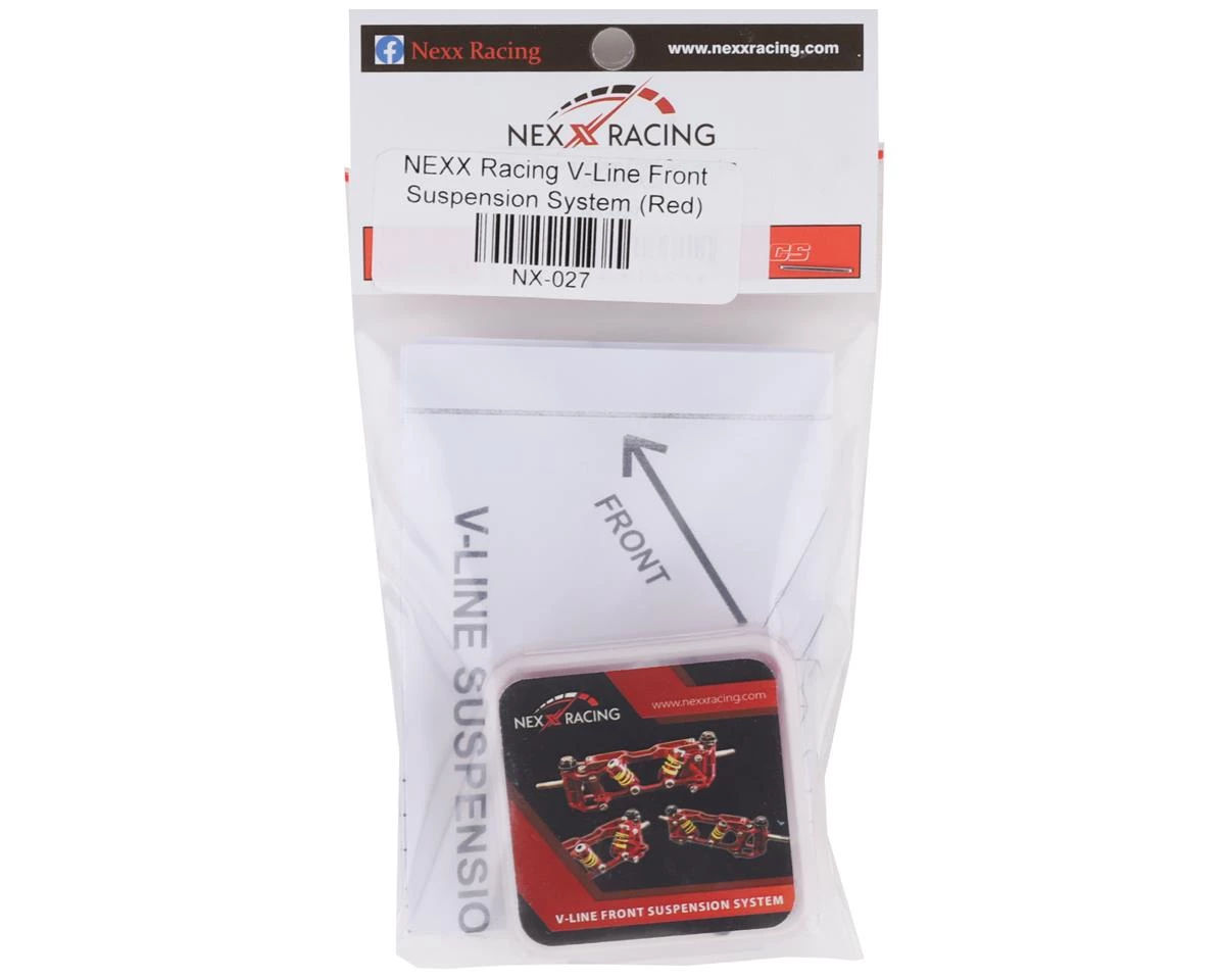 NEXX RACING V-line Front Suspension system is designed with innovative features such as, quick adjustable camber, and adjustable ride height. When installed onto your Mini-Z not only does it provide aesthetic improvements, but performance improvements as well. Performance increases are thanks to higher speeds due to improved suspension stability, and improved cornering speed. With locknuts and kingpins, V-LINE is designed to minimize most of the play resulting very smooth performance.